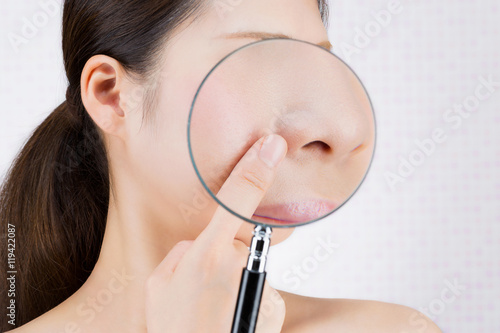 © kei907, Fototapeta premium 虫めがね・小鼻のスキンケア