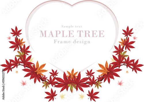 © Biiton Illustration, Obraz premium 紅葉のフレームシリーズ-01|紅葉の木のリアルなベクターイラスト|秋の景色