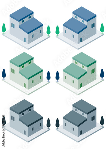 © tainookashiratuki, Obraz premium 俯瞰で見た一軒家の建物のイラスト