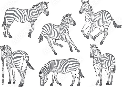 Fototapeta premium 様々なポーズのシマウマのイラスト