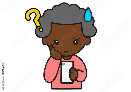 © scb13, Obraz premium スマホを操作が分からない黒人のおばあさん