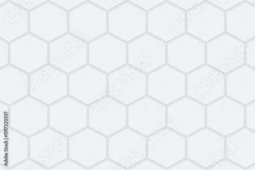 © KIKORI, Fototapeta premium カクカクした白い六角形のタイルが貼られた背景のアップ