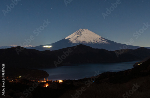© Umibozze, Fototapeta premium 箱根大観山から月光に照らされた富士山