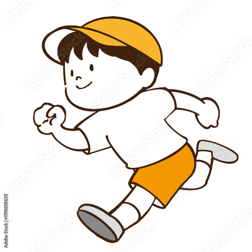Naklejka premium 元気に走る男の子のイラスト