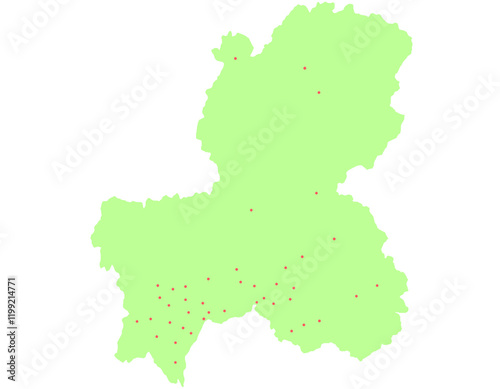 © 酢漬け きゅうりの, Obraz premium 岐阜県 地図 黄緑 斑点 イラスト