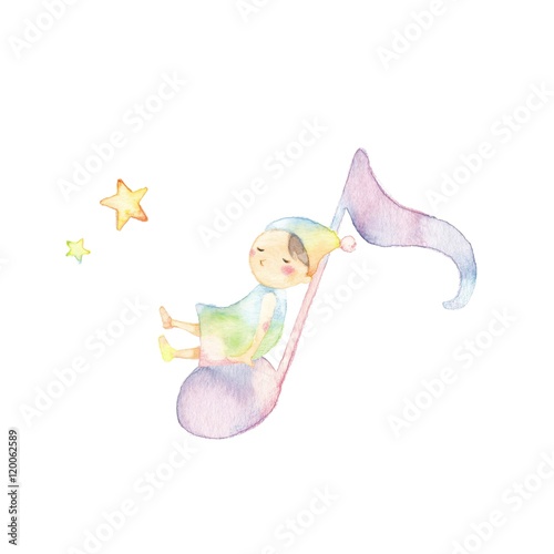 Naklejka premium 音符と小人、のんびりやさん
