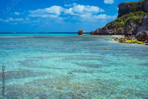 Fototapeta premium 沖縄のラグーンの透明な海ときのこ岩