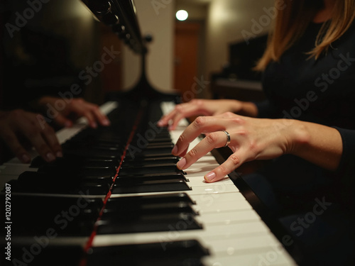 © daiji-Stock, Obraz premium ピアノを弾いている女性の手元
