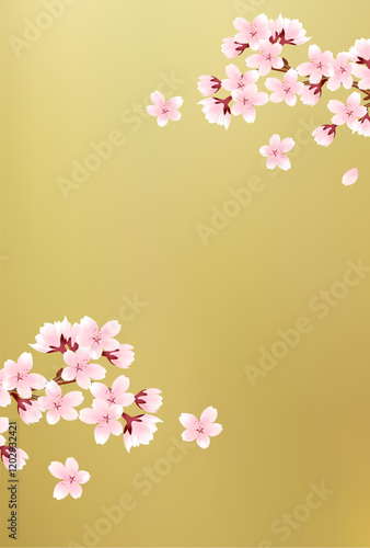 © KUU, Naklejka premium 桜 和柄 水彩 背景