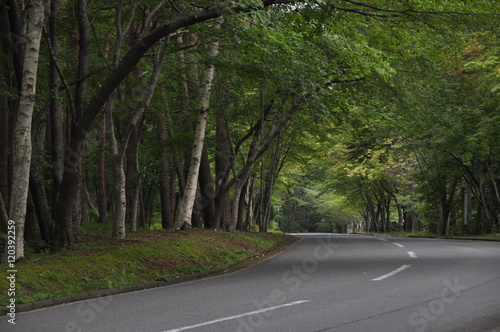 © Yuko, Fototapeta premium 夏の山道 白樺 避暑地 夏休み