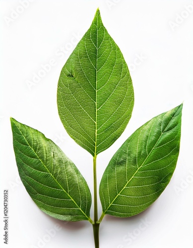 © Shousei, Obraz premium 春の新芽が伸びる若葉のクローズアップ、白い背景が清涼感を引き立てるシンプルなデザイン