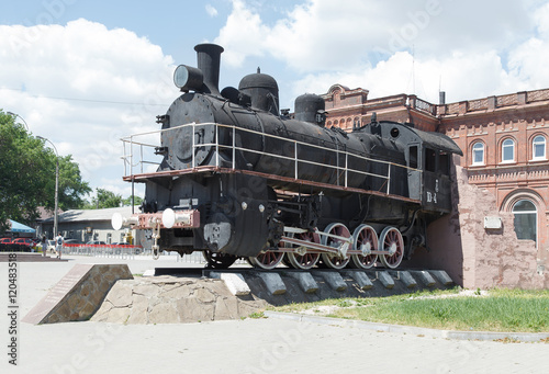 Obraz premium Памятник Старый паровоз ЮП 4504 на площади Восстания. Таганрог, Россия