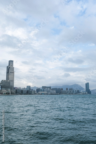 Fototapeta premium ビクトリアハーバーから見る九龍のウォーターフロント