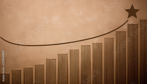 Obraz premium 갈색 톤의 빈티지 배경 위에 깔끔하게 그려진 상승 그래프, 선 끝에 작은 별이 반짝임