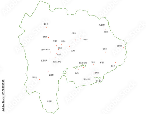 © 酢漬け きゅうりの, Obraz premium 山梨県 地図 白 斑点 イラスト