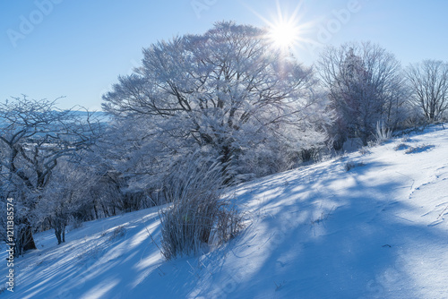 © rai, Obraz premium 美しい霧氷の木々と青空