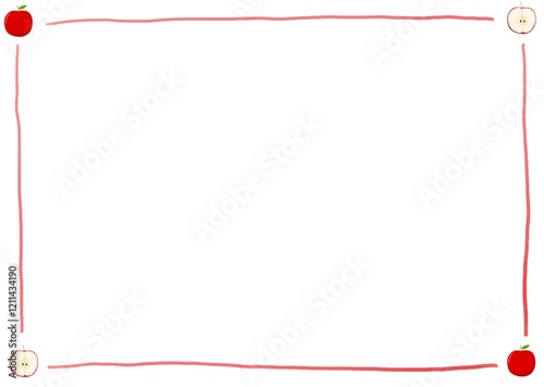 © Mami, Obraz premium シンプルな手描きの赤いりんごのフレーム