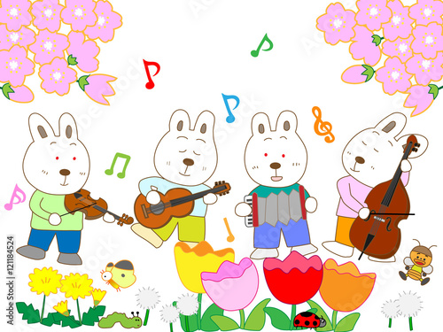 Obraz premium 春のウサギの演奏会