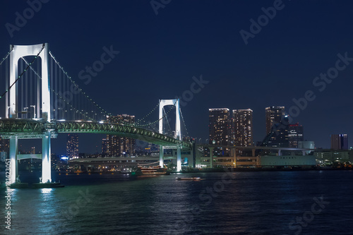 Obraz premium ライトアップのレインボーブリッジと高層ビル群 夜景