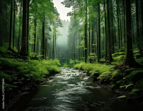 © ようよう, Obraz premium 森林に小川が流れている景色