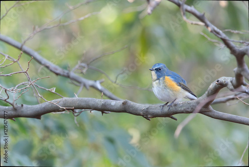 © cat_smile, Fototapeta premium 木の枝にとまるルリビタキ