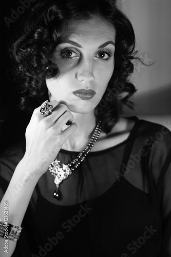 Obraz premium Портрет девушки модели в образе голливудской кинодивы двадцатого века мода...
