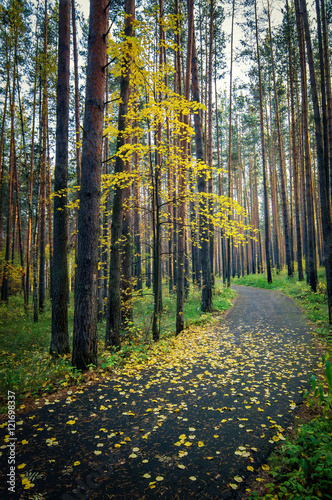 Fototapeta premium тенистый осенний лес с парковой дорожкой