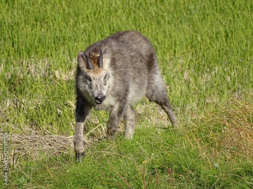Obraz premium あぜ道を歩くニホンカモシカ