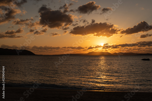 © WATARU OHIRA, Obraz premium オクマビーチで見る夕景・沖縄県