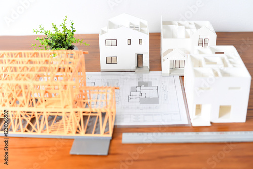 © koumaru, Obraz premium 机に置かれた住宅・不動産模型のイメージ