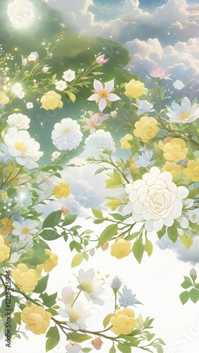 © CreativeVirginia, Fototapeta premium 視覚的な静けさ, おとぎ話のインスピレーション, 天国のような風景, 自然光, 優しい雰囲気, 描かれた自然, 妖精の庭, 自然のディテール, 幻想的な美しさ.