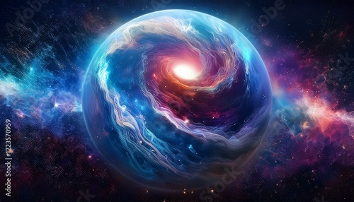 © 순단 강, Obraz premium 암흑 공간에 떠있는 독특한 색상의 구형 행성