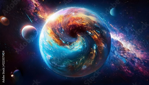 © 순단 강, Obraz premium 암흑 공간에 떠있는 독특한 색상의 구형 행성
