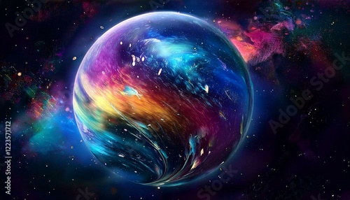 © 순단 강, Obraz premium 암흑 공간에 떠있는 독특한 색상의 구형 행성