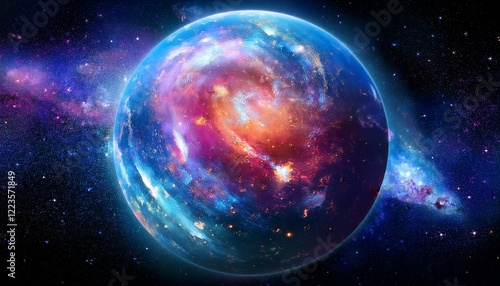 © 순단 강, Obraz premium 암흑 공간에 떠있는 독특한 색상의 구형 행성