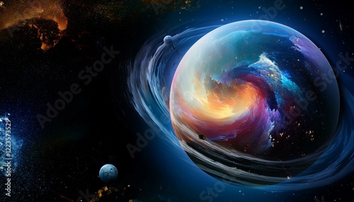 © 순단 강, Obraz premium 암흑 공간에 떠있는 독특한 색상의 구형 행성
