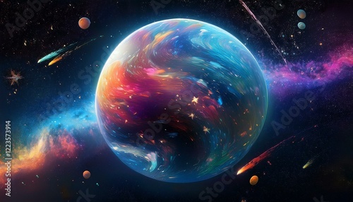 © 순단 강, Obraz premium 암흑 공간에 떠있는 독특한 색상의 구형 행성
