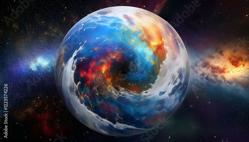 © 순단 강, Obraz premium 암흑 공간에 떠있는 독특한 색상의 구형 행성