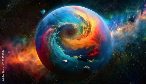 © 순단 강, Obraz premium 암흑 공간에 떠있는 독특한 색상의 구형 행성