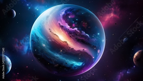 © 순단 강, Obraz premium 암흑 공간에 떠있는 독특한 색상의 구형 행성