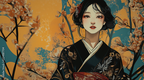 © 963k, Fototapeta premium 幻想的な着物美人|伝統とモダンが融合した和風アート
