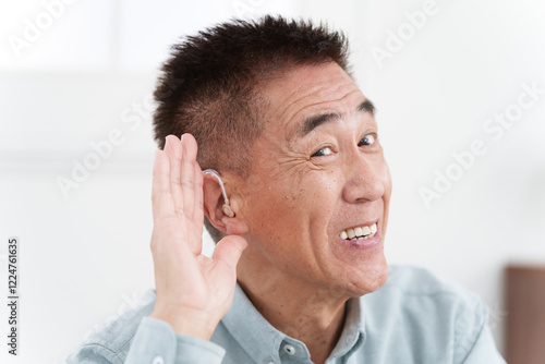 © polkadot, Obraz premium 補聴器をつけたシニア男性