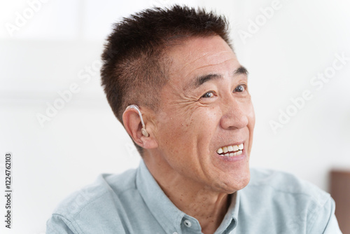 © polkadot, Obraz premium 補聴器をつけたシニア男性