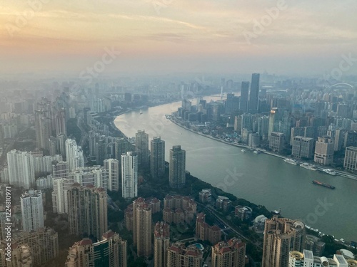 © Matsudondon, Fototapeta premium 上海の朝 黄浦江周辺の街並み