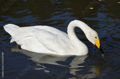 © elizalebedewa, Naklejka premium Лебедь плывёт по реке.