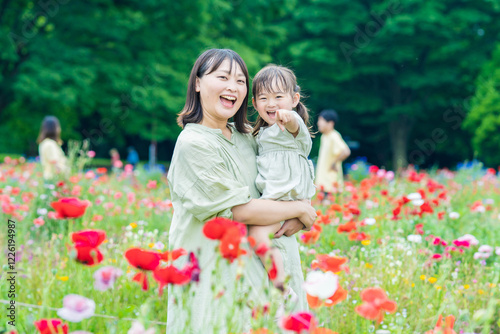 © TAGSTOCK2, Fototapeta premium 花畑を散策する親子