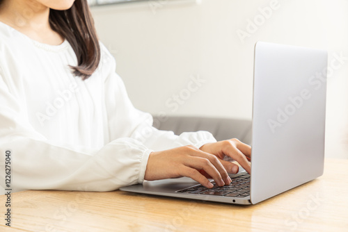 © yukinoshirokuma, Naklejka premium タイピングをするアジア人女性の手元02