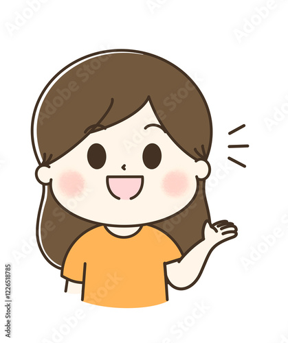 Obraz premium 笑顔で話をしている女性のゆるかわイラスト