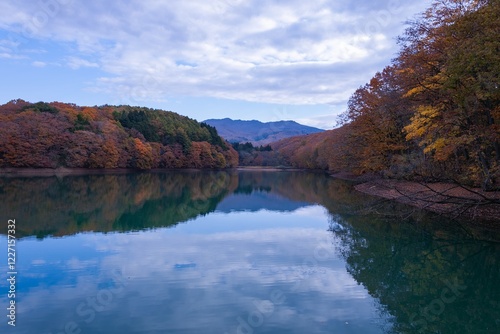 © A-Dash Gallery, Obraz premium 紅葉した山と湖
