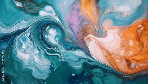 © EASY103, Fototapeta premium 複数の絵の具が水面で混ざり合い、マーブル状の流れを作るテクスチャ